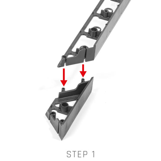 Nipple Line is a connector designed to connect two sections of RIM 90° garden edging, 55mm high, to a mower ramp. It allows the same AB edges to be joined in a straight line. The nipple line connector is made of polypropylene copolymer with UV stabilizer, 100% recycled.