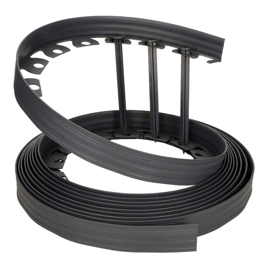 MATERIAŁ: Krawędź trawnika jest wykonana z tworzywa sztucznego pochodzącego z recyklingu z dodatkami, dzięki czemu produkt końcowy jest odporny na warunki atmosferyczne.